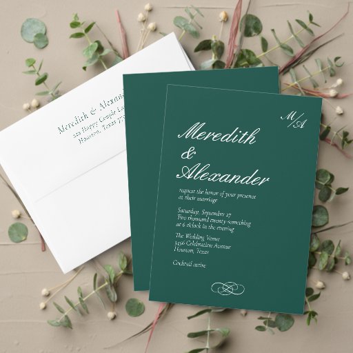 この印象的なエメラルドグリーンの結婚式プログラムで特別な日を通してゲストを案内する。鮮やかな白い文字で豊かな緑の背景を持つプログラムは、あなたの儀式の美しく組織的な概要を提供する。カップルの名前、日付、および式の結婚詳細でパーソナライズしてtouchを追加ユニークする。スクリプト伝統的タイポグラフィは、時間を超えたエレガンスを追加し感じて、お祝い中で顧客に情報を提供し、大切に思いを馳せることを保証する。