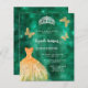15モダン歳のスタイリッシュ誕生日パーティー、キンセアニラへの魅力的な招待。金ゴールドのドレス、銀のティアラフェイクと黄金の蝶と詰め込まれたエメラルドフェイクグリーンの背景。名前は手書文字のスタイルスモダンクリプト付き。カスタマイズしてパーティー詳細を追加する。1枚= 1枚の招待状を印刷したエッジからエッジ