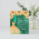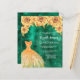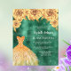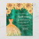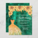 15モダン歳のスタイリッシュ誕生日パーティー、キンセアニラへの魅力的な招待。金ゴールドとドレスとバラ、花模様を持つフェイクスタッズされたエメラルドグリーンの背景。名前は手書文字のスタイルスモダンクリプト付き。カスタマイズしてパーティー詳細を追加する。1枚= 1枚の招待状を印刷したエッジからエッジ