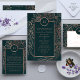 結婚式のフォーマル出席者ロマンチックなフローラリース優雅な恋愛フローラ結婚の囲いパンパエレガントスモノグラム箔フローラ結婚式招待状ほこりっぽいバラ金ゴールドクラシックピンク赤面クラシックエメラルドグリーン