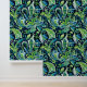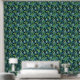 黒い背景名門私立校風のに設定された緑と青のフローラ要素の色合いを特徴とするシームレスなパターン。このデザインは鮮やか、葉と暗い背景を組み合わせて印象的で視覚的な効果をエレガント生み出す。