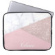 エレガントでガーリーなばら色の金ゴールドのグリッターの白い大理石のピンク ラップトップスリーブ