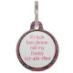 このエレガントな犬用IDタグは、主に赤、濃い青、白の色調でオリエンタルアンティークペルシャ絨毯のパターンを特徴としています。 あなたはあなたのペットのためにタグをパーソナライズするためのテンプレートが提供されています。 裏側には、犬が迷子になった場合に連絡する人と電話番号を記載することができます。