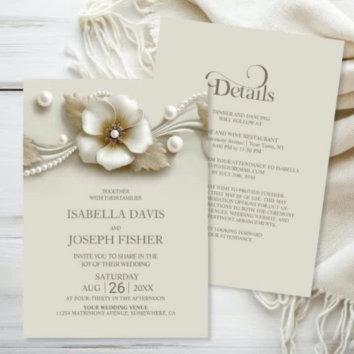 エレガントなオールインワンの花とパールのウェディング 招待状