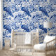 エレガントなトワルドジューイ ブルー ホワイト ペコック フラワーパターン 壁紙