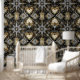 エレガントなブラック&ゴールドアートデコスターパターン 壁紙