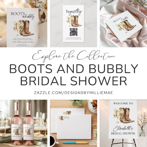 このチャーミングなブーツ & バブル ブライズシャワーの感謝カードで、結婚式を控えた花嫁を祝いましょう。ラスティックとエレガンスが融合したデザインが特徴で、ウォーターカラーのカウボーイブーツと、クリーム色の花が咲き誇るシャンパングラスが描かれています。このシンプルながらも洗練されたデザインは、スタイリッシュなセレブレーションの雰囲気を演出します。カントリー・チックやウエスタン・テーマのシャワーにぴったりで、バブルな雰囲気をプラス!