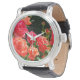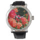 エレガントな赤オレンジ色のコーラルローズが咲き誇る庭園 腕時計