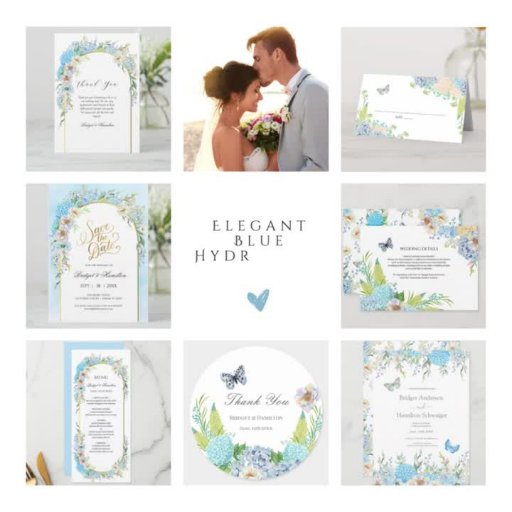 エレガントな青いハイドランジアのウェディング招待状