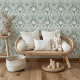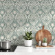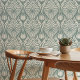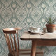 エレガントアールデコフローラ羽模様ソフトティール(緑がかった色) 壁紙