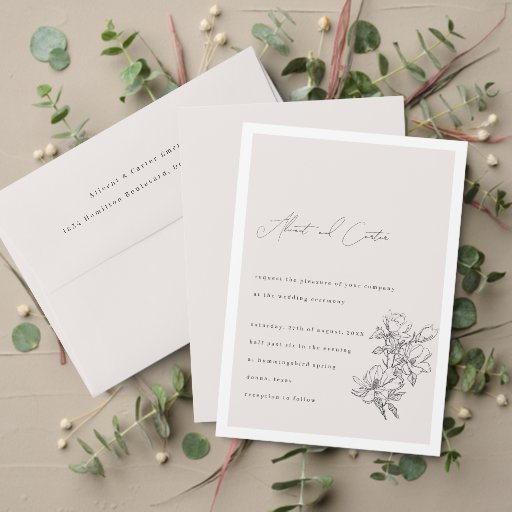 エレガントシンプルラインアートの花と縁ど 出欠カード (この独立クリエイターのコレクションをカスタマイズ。テスト)エレガントシンプルラインアートの花と縁ど 出欠カード (裏面)エレガントシンプルラインアートの花と縁ど 出欠カード (スタンド正面)