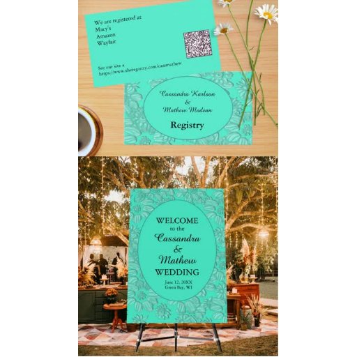 ターコイズ結婚の製品はエレガント3Dのような外観と半透明の背景を持つデイジーを特徴とあなたの好みの色を提示する。中央の部分無地のは、カップルの名前と日付が表結婚示された円を表示する。背中にはデザインのみ。編カスタマイズ集した背景の色。