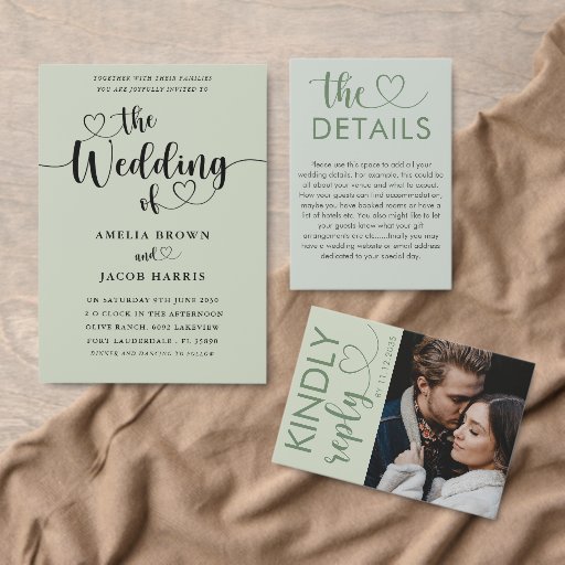 エレガントハートバラ金ゴールドとグリーン結婚式招待状 箔招待状