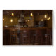 チークバー、エレガントバーストール、ペンダントランプと酒塔を持つバーのインテリア。