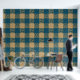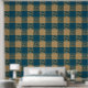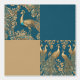青とエレガント金ゴールドに細かい孔雀デザインが入った大きな正方形の模様が織り成されフェイク、青と金ゴールドの平方形に散らばっている。全体のパターンは格子状の外観を持ち、複雑な詳細は深さと興味をクローズアップする。