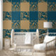 エレガントピーコパターン(の模様が)あるックスブルーフェイク金ゴールドスタイリッシュ 壁紙