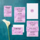 薄紫グリッターとフォイルエレガントバックを備えた結婚式招待状。