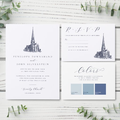 エレガントヴィンテージ教会イラストレーション結婚ズ 招待状