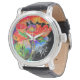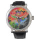 エレガント抽象芸術赤フローラ水色 腕時計
