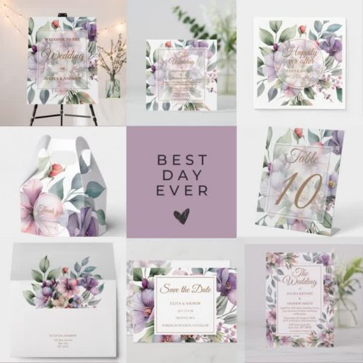 私たちのミニマルとトレンディーのクーラーボックスを紹介結婚しかわいらし、光の紫と緑のの花を含む葉と、背景を持つ、あなたの特別な日のためのクリーンとエレガント外観を作成する。