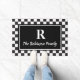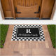 エレガント白黒市松模様にカスタムモノグラム ドアマット