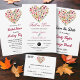 このエレガント秋の結婚式の招待は秋モダンの間に合結婚う。シンプルデザインは、ネイビーブルーの背景に白と黄色のタイポグラフィを持つ紅葉のカラフルハートを備えている