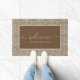 ようこそエレガント茶色のクリームの山形の背景を持つDoormat。家族の名前または文字でパーソナライズ