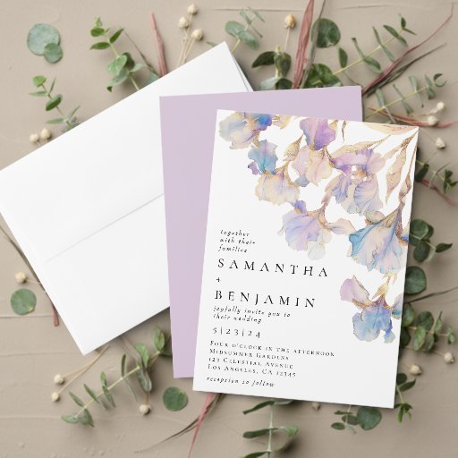 このエレガントなウェディングレジストリのエンクロージャカードは、春と夏の結婚式に最適である。このデザインは、薄紫の色合いとペリウィンクルブルーの水色の虹彩を特徴とする。金ゴールドの微妙なtouchは、輝く、魔法の要素を追加する。