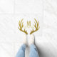 エレガント金ゴールドフェイクグリッターディアー〔雄ジカの〕枝角&ホワイト ドアマット