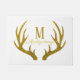 ファンシーエレガントフェイク金ゴールドグリッター鹿〔雄ジカの〕枝角シルエットと家族の名パーソナライズされた前とモノグラム文字。