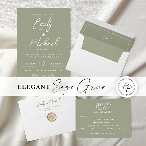 私たちのエレガントセージ緑のスリム結婚式プログラムカードのデザインはあなたのミニマルな結婚お祝いに最適である。カードの前面に緑色の背景にシンプルは、フォントとクリーンな文字を組み合わせた美しい白い書道台本のが置かれている。白の逆は色調の緑の文字を持ち、あなたのイベントを補完する高い外観を作スタイリッシュ成する。簡単と自分カスタマイズの詳細で自分の結婚