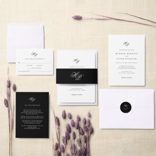 エレガントScript Monogramイニシャルブミニマルラック&ホワ結婚イトのサンキューカード
