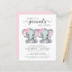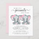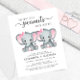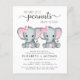 柔らかい灰色のフレンドリータイポグラフィとスクリプトと2つのパステルピンクの水色のベビー象の書2つのパステルピンクの水の色と"2つの甘い小さなピーナッツが彼らの道にある"とキュートで予算のツイン女の子カップルの赤ちゃんシャワーの招待スタイリッシュ。親の名前とシャワー詳細の名前を追加シンプル灰色タイポグラフィ。