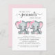 エレファントツインベビーガールズドライブバイシャワー招待状