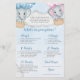 このお洒落電話のベビーシャワーゲームは、青い水色の背景に青とピンクのホットエアバルーンの雲の中で愛らしい男の赤ちゃんと女の子ゾウを備えている飛んでいる。簡単の「パーソナカスタムライズ」ボタンを使ってクリックオプションでパーソナライズする。
