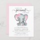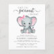柔らかい灰色のタイポグラフィとスクリプトの混合物とパステルピンクの水色の赤フレンドリーちゃん女の子の象の書パステルピンクの水の色のと"甘い小さなピーナッツが彼女の道にある"とキュートで予算の赤ちゃん女の子の仮想シャワー招待。母親の名前とシャワーの詳細をカスタマイズするグレーシンプルタイポグラフィ。