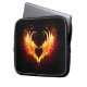 エンジェルは黒い背景に輝く翼を持つハートを発射する。