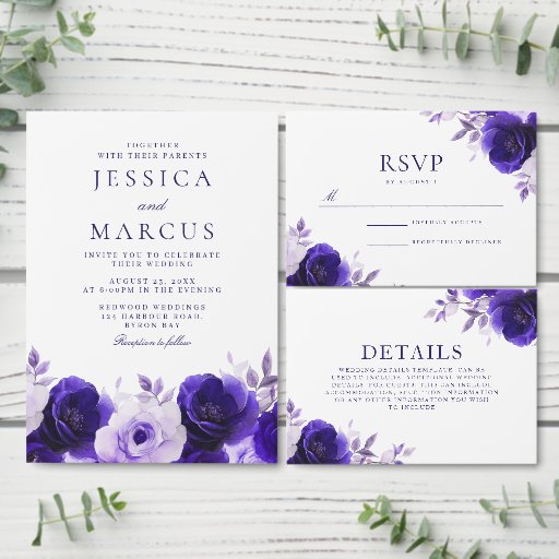 エンチャントブルー:ミッドナイトネイビーブルーバラ結婚ズ 招待状