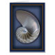 青いマットのオウムガイの貝の中の半分はシャドーボックスフレームの効果の中で置きました。