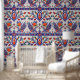 花のモチーフとネイビーブルーを使用したオスマン中国を基調にした模様を基調とした豪華な壁紙縁どです。