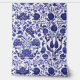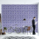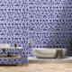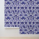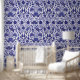 花のモチーフと青い色のパレットを持つオスマン中国タイルをベースにしたパターンを特徴とする豪華な壁紙。