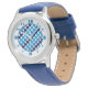 斜め行ハートの青アクセントこのおもしろい腕時計は子供のスタイルだけでなく、大人のためのおもしろいで表示される。白い背景に青い数字を調整すると、時間を知らせる簡単が生じる。