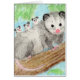 良いオポッサムの母親のACEOは、彼女の三つ子を背中に乗せて、木の枝に止まった。Derwent絵を描の水溶性グラファイトと水の色鉛筆と。