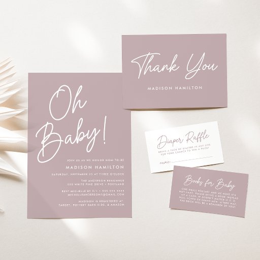 赤シンプルちゃんシャワーステッカー「あーベビー!」が黒いスクリプはっきりしたトにダスティ紫の背景で飾られている。ミニマルな赤ちゃんシャワーのシールを母名と日付でパーソナライズ。ほこりっぽい紫の赤ちゃんシャワーのシールは女の子の赤ちゃんシャワーに最適!