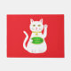 オリエ素晴らしントホワイトの手で猫を振るグラフィックデザインのイメージ。猫は金ゴールドの目が美しく、首に金ゴールドのメダリオンを付のまわりにけている。猫はピンクの耳とヒゲがある。この可愛い小さな子猫は、緑の玉の象嵌と黄金の文字のメッセージで金のトークンを保持している"幸運"と言う。