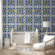 繊細で美しく対称なヴィンテージ花模様ポルトガルのアズレジョクラシック装飾模様。地域インスパイアのクラシック陶芸地中海の術で複雑な幾何学的およびフローラのモチーフ素晴らしは、視覚的なタペストリーを作成し、キッチン、バスルームはっきりした、またはアクセントの壁に、まだ洗練されたtouchを追加するのに最適。
