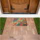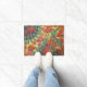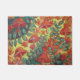かわいらしいオレンジきのこのドアマットは黄色い背景の赤い花、緑のつる植物および葉を備えています。 この自然の絵を描くことはリラックスさせるでお洒落なドアマットを作ります。