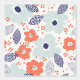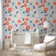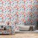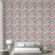 オレンジと青モダンの花模様 壁紙