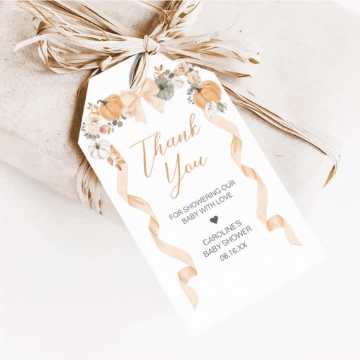 オレンジの弓のかぼちゃのベイビーシャワー サンキューカード