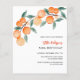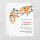 白地にオレンジの水彩画で装飾されたデザイン。お名前やパーティーの詳細情報を追加できます。